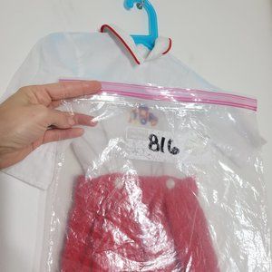 Jack Tar Three Piece Baby Outfit Corduroy Embroidered Train Red Shorts Vintage