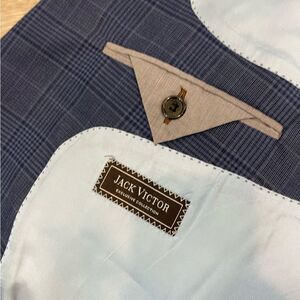 Jack Victor Gibson Blue Plaid Print Wool Single Breast Blazer Jacket 56R