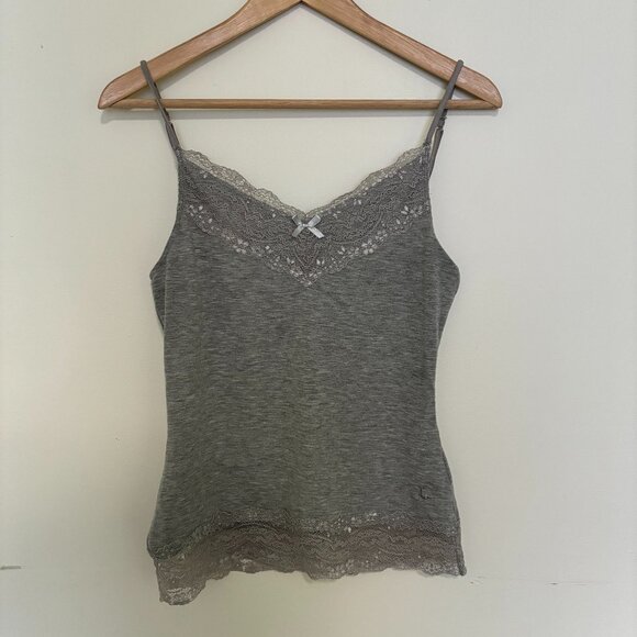 Jack Wills Grey Ribbon Lace Tank Top