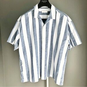 Jack and Jones Stripped Minimalist Pastel Grayish Blue Casual Relaxed Fit Short Sleeves Button Down Shirt Blouse.