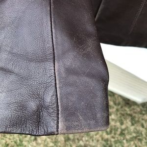 Foux Leather jacket. I’m used condition. No rips or tears. Fitted. Only some distressed look to pocket edges and sleeves.