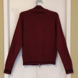 Bomber Polo cardigan, unit brand zip pull, reversed front zipper