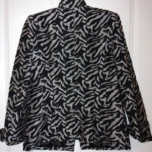 Trendy Anne Klein New York "Zebra" print embossed blazer. Two front flap pockets with turn up sleeve cuffs.
