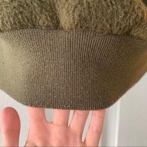 Short jacket, but oversized fit around the shoulder and chest. Has some signs of wear
