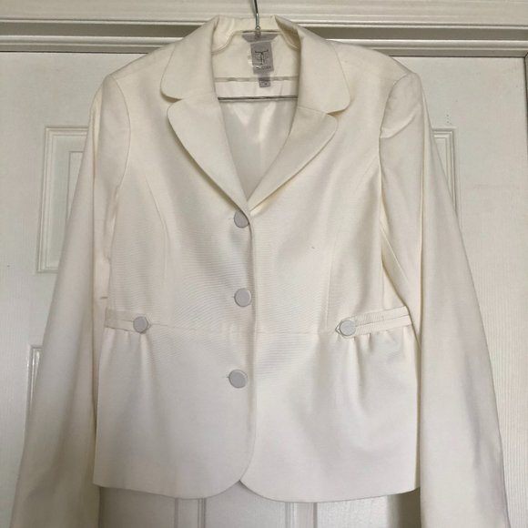 White jacket - only worn once. Covered buttons; made in Canada by Tristan.