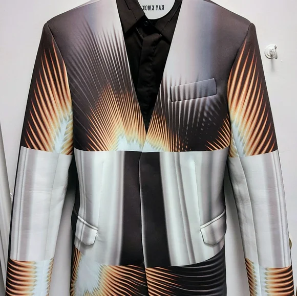Size small v-neck jacket with magnetic closer, stretch material 👌 Single Vent