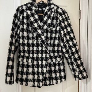 Warm spring jacket black and white with silver buttons. Bought this in Paris and haven't worn it. Can be worn with jeans, white pants, skirts very versatile.