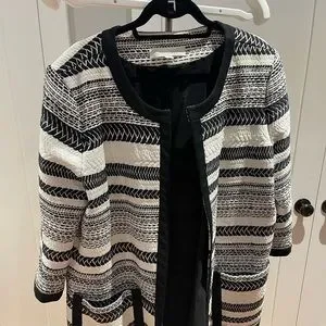 Fabulous Jacket worn 4 times. The size is XXL but translates to an 18/20. It is long to about mid thigh. It has big pockets! The fabric is heavy and very good quality.