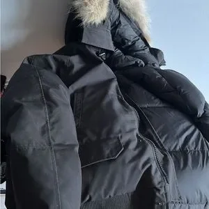 Stay warm and stylish with this sleek and elegant black Canada Goose jacket. Crafted with premium materials, this coat offers both supreme comfort and exceptional insulation against the cold. The timeless black color complements any outfit, making it a versatile addition to your wardrobe. Whether you're braving chilly urban streets or embarking on outdoor adventures, this Canada Goose jacket will keep you snug and fashion-forward