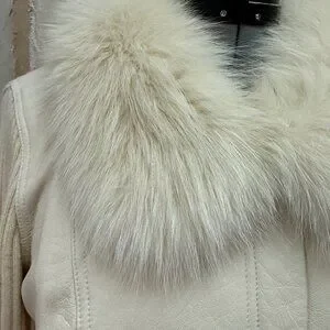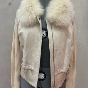 100% Wool Jacket.100% Front Leather panels.!00% Fox Fur. Size Large