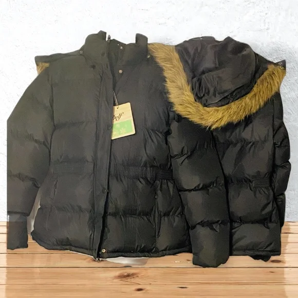 Short jacket style with fur collar, black and colour available in extra large and 2X brand new with tag never been worn
