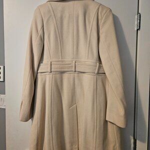 Classic and elegant Kenneth Cole coat in a beautiful neutral shade – perfect for fall and winter. This piece features a flattering tailored fit, button-front closure, and stylish belt detail at the waist for a polished look.