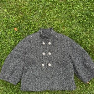 Great fashion item. 100% Wool 3/4 sleeves. Stylish real metal silver bouton that I made install to have it more refined. An extra that makes a whole difference.