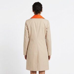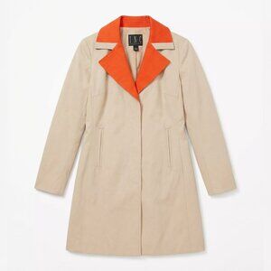 Brand New I.N.C. Double-Breasted Trench Coat – Size 8 – Beige with Coral Collar Accent