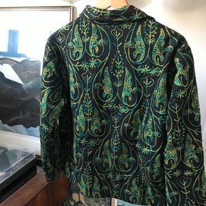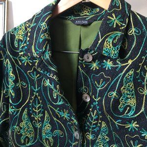 Lots of attitude! The fabric is heavy 50% wool - high quality piece. Just too big for me.