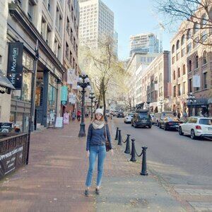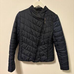 A very stylish jacket with a diagonal zipper. Looks great with a scarf or worn open.
