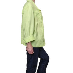 Jacket Linen blend 3/4 sleeves collared Green color CJ BANKS