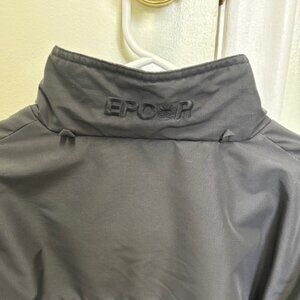 sewn in black thread is the word : EPCOR on the back collar - ( hidden when collar is rolled down )