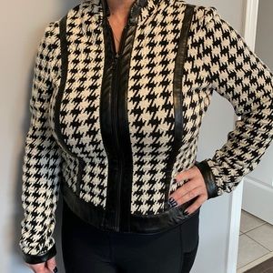A Medium Black and White jacket from Cleo. Made of Polyester and Spandex. Condition: Good
