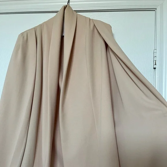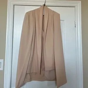 Very cute and unique, cape style with the shoulders being more of an over the shoulder vibe. Slightly pink toned
