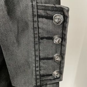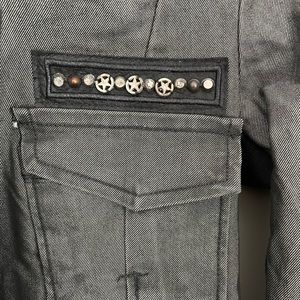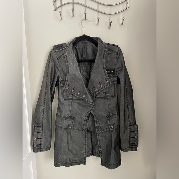Unique punk denim jacket. Sz L. Smoke free home. New without tags. Fits a little small. Everyday or a quality piece for a steampunk type costume.