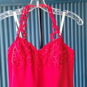 Jackie K Red Strapless Sleeveless Red Sheath Dress Back Slit Size 8