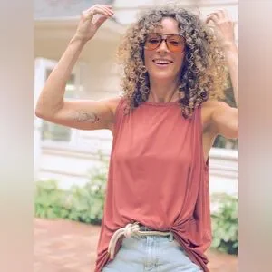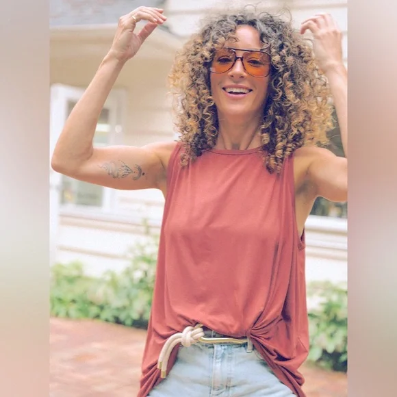 Stylish rust tank top. Sleeveless design. Perfect for casual wear.
