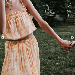 Wear this sweet set as separates or together - your choice! The top features adjustable shoulder straps and a cinched waist. The skirt is double-lined and designed to sit right at the waist. Elegant enough to wear to a summer wedding, and casual enough to wear grocery shopping. You don't want to miss out on this set.