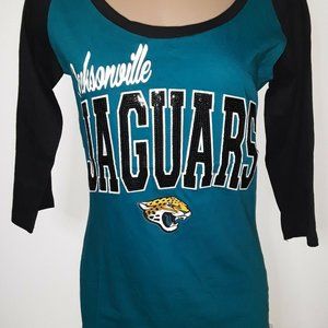 JACKSONVILLE JAGUARS NFL Team Apparel Womens sequin-embroidered 3/4 Sleeve T-Shirt.