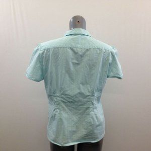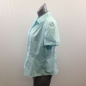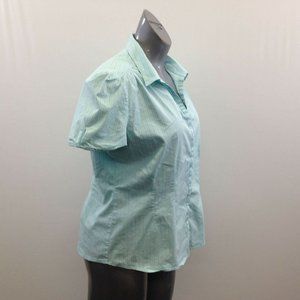 Jaclyn Smith V Neck Button Up Blouse Women's Size XL Cotton Blend Green Striped Short Sleeve Top