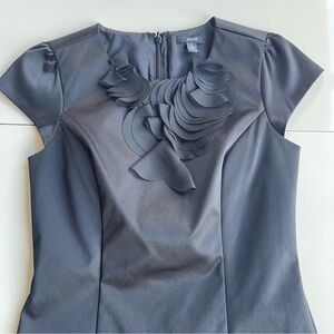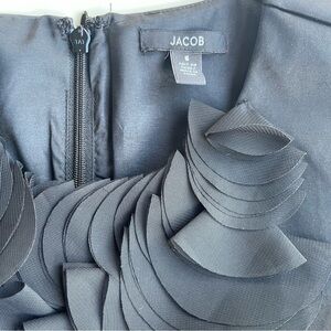 Jacob Black Satin 3D Floral Neckline Shift Mini Dress US 6