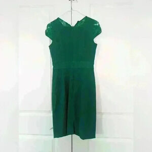 beautifully tailored and lined size small green dress with lace at the top and slit at the back with zipper. dress is so elegant and classy worn a few times. dress is in perfect condition, slight marks at the armpit which is not visible when on, please see pics for details.