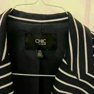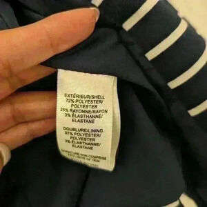stretchy stripe blazer with extra button inside, perfect amount of stretch to allow for comfort. pre-owned in great condition.