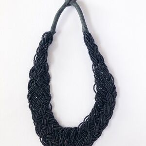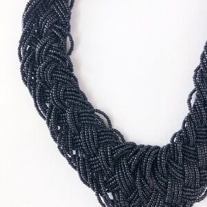 Beaded necklace, braided into this beautiful statement necklace. In good condition, but some of the threads are coming undone at the top right. One of the beads is white on the reverse side of the necklace.