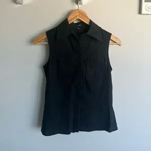 Black button tank with double pocket detail