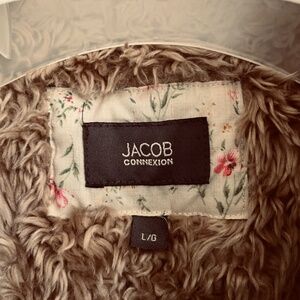 Jacob Connexion Vintage Jacket Beige Denim fur Lining Pockets Collared Size L