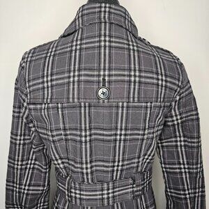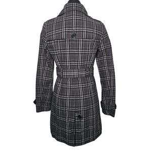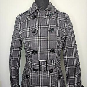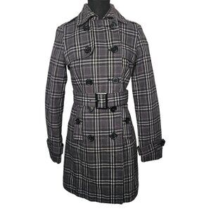 Jacob Plaid Grey Buttoned Double Breasted Belted Trench Coat, XS