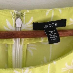Jacob Printed Flowy Mini Dress Stunning Lime White Palm trees Half Sleeve Sz XS