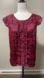 Like new condition. Flutter sleeve. Rounded collar. Ruffled front pleats. Keyhole back opening with button.