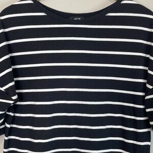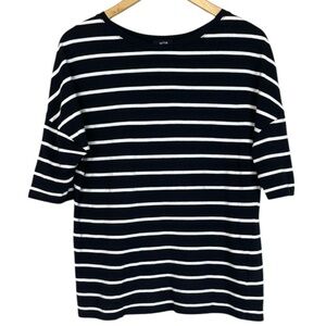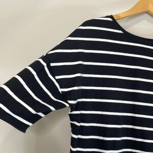 Women’s black and white Jacob horizontal Striped Drop Shoulder Short Sleeve T-Shirt.