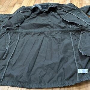 Size xsmall. Jacob. Utility jacket. Army green. Drawstring at waist and bottom hem. Has 4 button pockets on the front.