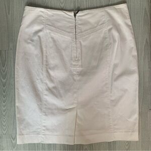 Classic and versatile Jacob pencil skirt in crisp white. Features a tailored silhouette with paneled seaming for a flattering fit, back zipper closure, and slight stretch for comfort. Perfect for the office, business casual looks, or dressy occasions.