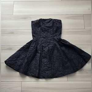 Jacquard Fitted Ruffle Hem Strapless Mini Dress