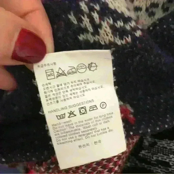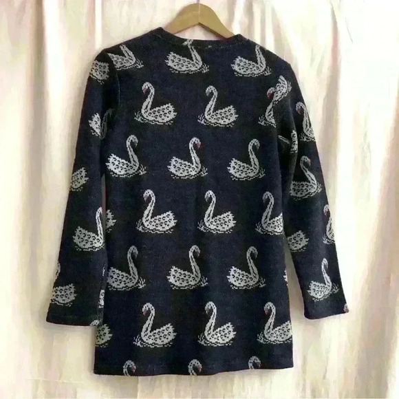 This is a jacquard knit round neck sweater. Indigo blue with swans, beautiful rare find. Soft and warm. Great preloved condition.