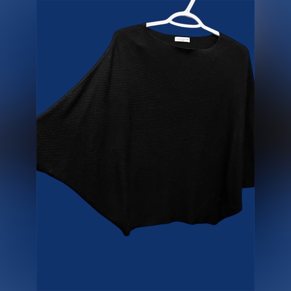 Jacqueline De Yong Open Sleeve Ribbed Knit Poncho Sweater Top Black Size M