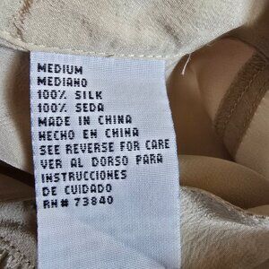 Unique Mandarin collar on this silk button up blouse in a cream kind of off-white.