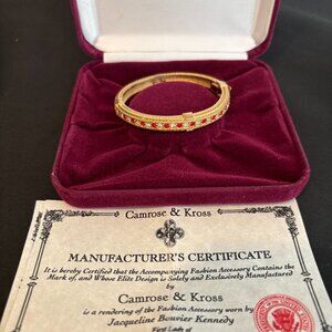 Signed JBK ruby Crystal bangle bracelet in original box logo Camrose & Kross burgundy box. Lovely hinged bangle bracelet of 8 inches of red and white alternating Swarovski crystals to surround your wrist. Boxed with a romance card and Manufacturer's Certificate of Authenticity.