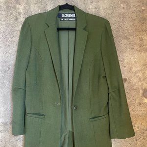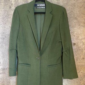 Long sleeve viscose-blend canvas blazer in green. Notched lapel collar. Button closure at front. Welt pockets at waist. Three-button surgeons cuffs. Pleats at side-seams. Central vent at back hem. Fully lined. Supplier color: Green.