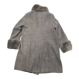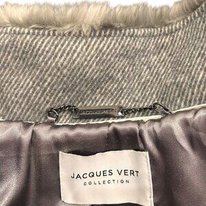 Jacques Vert Grey Wool Mix Faux Fur Trimmed Funnel Neck Coat – Size 14