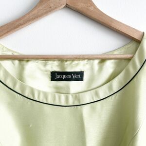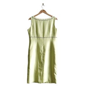 Jacques Vert Sheath Dress Green Black Embroidered Women's 14. Sleeveless, lined, invisible side zip. Beautiful cocktail dress to take you through spring and summer parties and events. Classy! A few small spots - see photos. Very good used condition. Please see photos for approximate measurements.